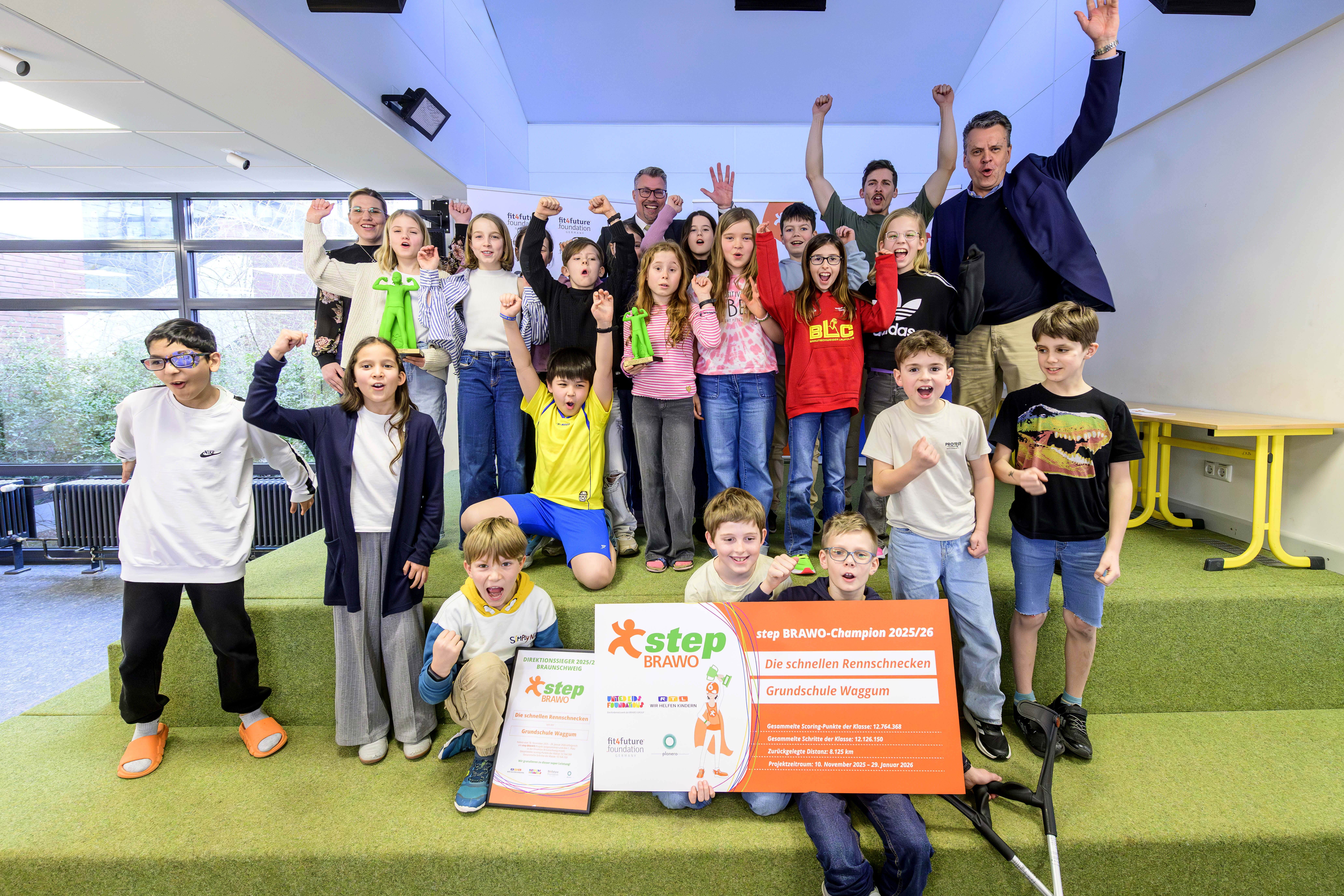 In der gesamten BRAWO-Region sammelten 2.500 Schülerinnen und Schüler vom 24. November 2025 bis zum 29. Januar 2026 möglichst viele Schritte für den step BRAWO-Wettbewerb. Somit wurde das Projekt bereits zum siebten Mal von der fit4future foundation in Zusammenarbeit mit der „Stiftung RTL – Wir helfen Kindern e. V.“ sowie United Kids Foundations, dem Kindernetzwerk der BRAWO GROUP, durchgeführt. Ziel ist es, mit step BRAWO einen Anreiz zu mehr Bewegung zu schaffen und durch den einfachen Wettbewerbscharakter die Kinder langfristig zu motivieren.